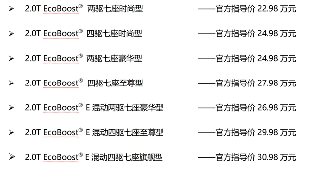 9月26日,2026款福特锐界L升级上市,正式推出7款车型,官方指导价22.98万元-30.98万元 。